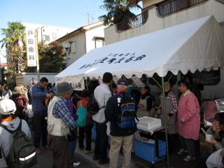 今年は、人の出足が遅く、お客さんが来てくださるのか心配しましたが、徐々に人が増え、食事サービスの豚汁等も売れ始めました。例年来てくださる方たちとの会話を楽しみながら、提供された品々が売れていきました。