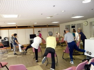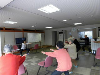 それぞれの腰・膝の補強運動、肺・呼吸器の強化、ながら体操とラジオ体操のポイントなど、おしゃべりを交えて楽しく行うことができました。