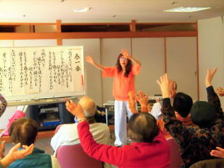 また、小学唱歌を歌い(言葉の勉強になりました。)、『金色夜叉』では二役に分かれ、役になりきって声を出しました。