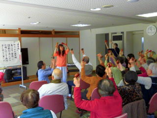 講師:小原信子音楽療法士、上田介護予防運動員