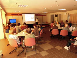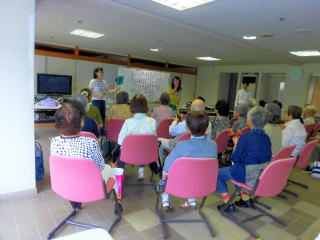まずは筋肉の衰えの話、運動や食事の大切さ、各自、自分の書いたアンケートにもとづき、自分はフレイルになっているかを知り、その後椅子に座っての体操でした。