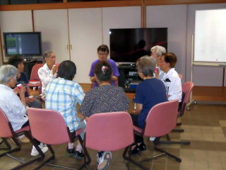 体調確認のあと、筋力維持体操と敬老の日、新内閣大臣、防災、電気不通の時の対策など、話題もいろいろでした。