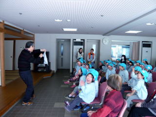ホールを避難所としてお話をして頂き、日頃の訓練により、もしもの時に動ける身体と精神の大切さを伝えて頂きました。