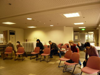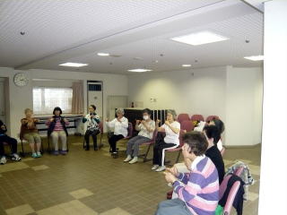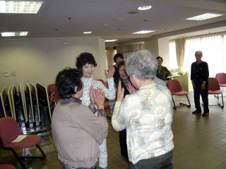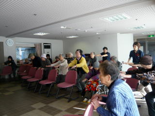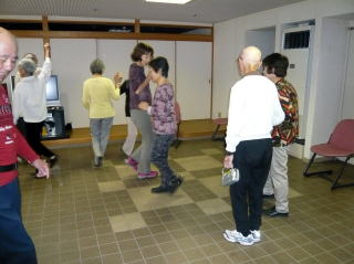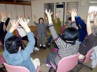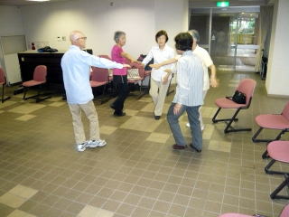 八王子『太陽踊り』体操をし、新しいメンバーにいつもの指ゲームをして、笑ってごまかす方法を伝授。輪になり、頭の体操とストレッチができるゲームで終了しました。