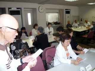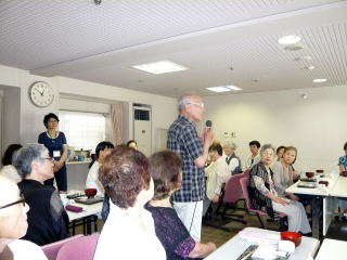 その後、参加者全員立ち上がってのゲーム、頭の体操を笑いの中でおしゃべりの花も咲かせてフル回転の時間を過ごすことができました。