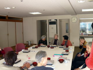入り口で血圧や握力を測り、東浅川保健センター安達直子保健師さんに、色々アドバイスを頂き、その後お話に入りました。